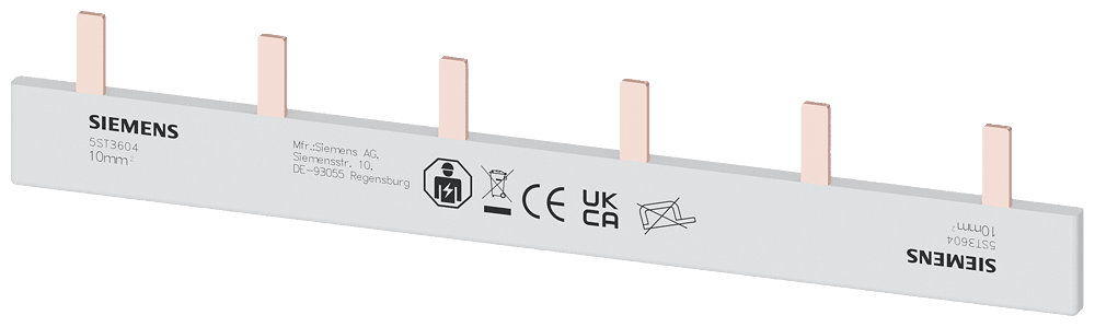 SIEMENS - Sbarra di collegamento a punte 10mm², monofase, 6x (1 fase+AUX), 158mm