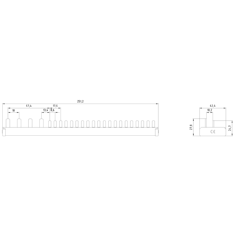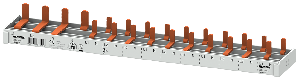 SIEMENS - Sbarra di collegamento a punte 10mm², quadrifase, 1x (3 fasi+N) + 10x (1 fase+N), 251mm sezionabile 5ST37834