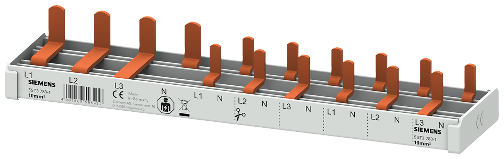 SIEMENS - Sbarra di collegamento a punte 10mm², quadrifase, 1x (3 fasi+N) + 6x (1 fase+N), 181mm sezionabile 5ST37831