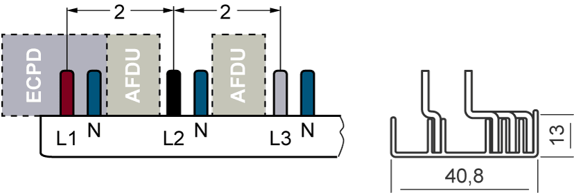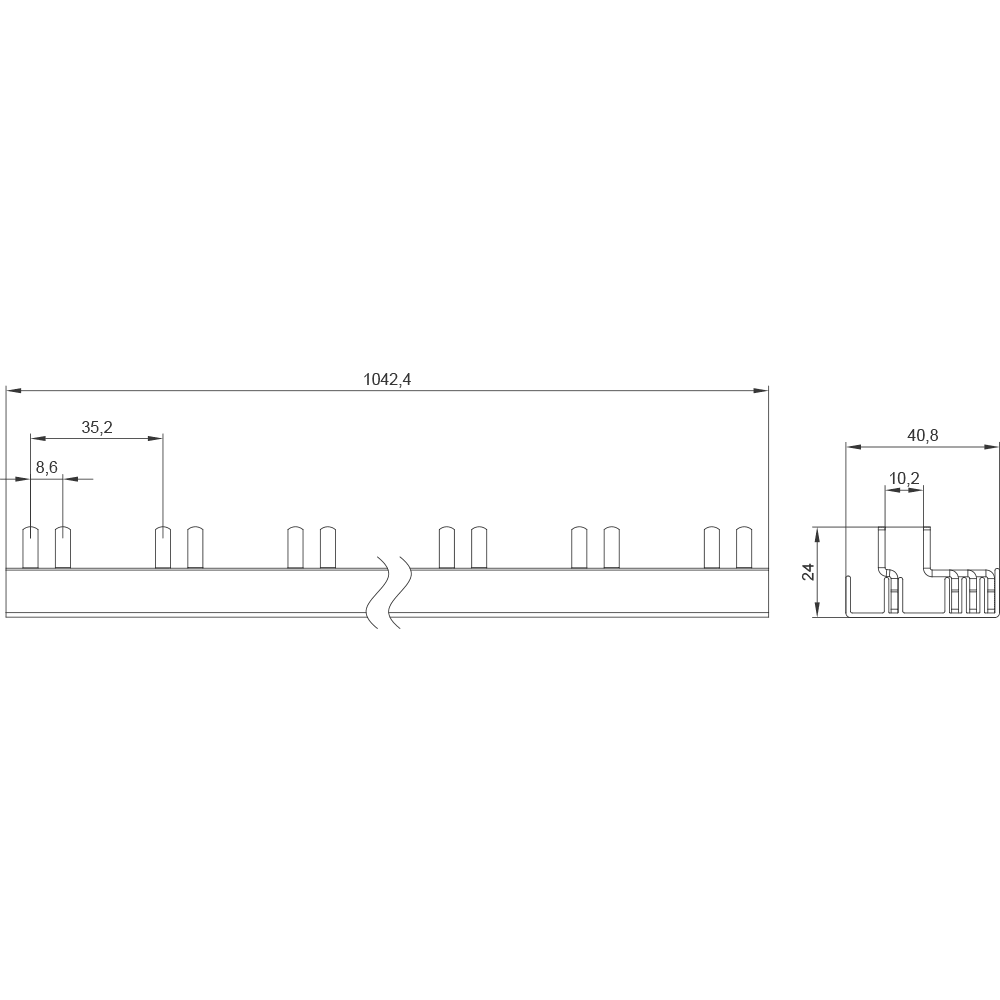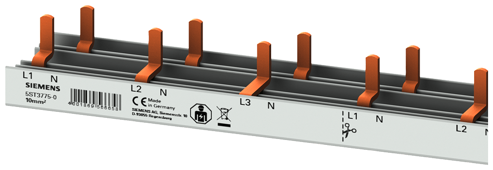 SIEMENS - Sbarra di collegamento a punte 10mm², quadrifase, 30x (1 fase+N), 1042mm sezionabile