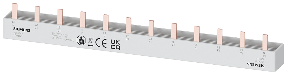 SIEMENS - Sbarra di collegamento a punte 10mm², quadrifase, 3x (3 fasi+N), 214mm sezionabile
