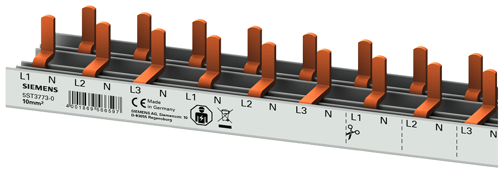 SIEMENS - Sbarra di collegamento a punte 10mm², quadrifase, 60x (1 fase+N), 1060mm sezionabile
