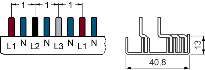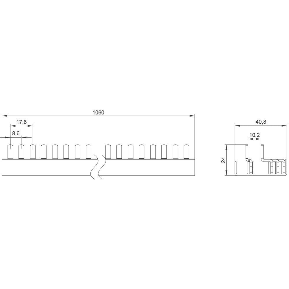 SIEMENS - Sbarra di collegamento a punte 10mm², quadrifase, 60x (1 fase+N), 1060mm sezionabile 5ST37730