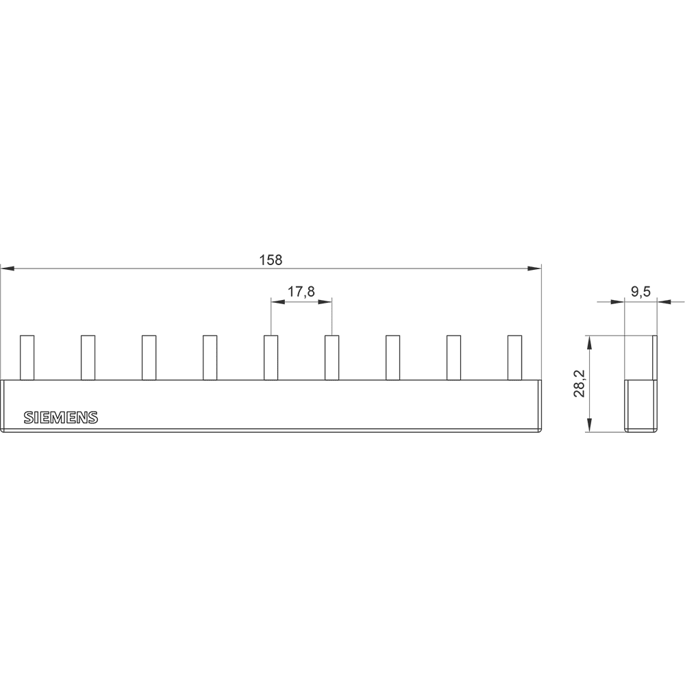 SIEMENS - Sbarra di collegamento a punte 10mm², trifase, 3x 3 fasi, 157,5mm