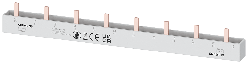 SIEMENS - Sbarra di collegamento a punte 10mm², trifase, 8x (1 fase+AUX), 214mm sezionabile 5ST3743