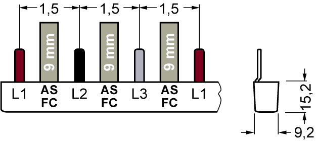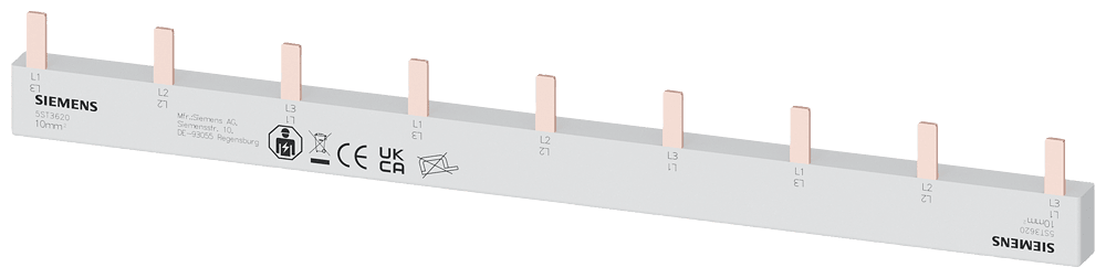 SIEMENS - Sbarra di collegamento a punte 10mm², trifase, 9x (1 fase+AUX), 227mm 5ST3620
