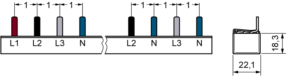 SIEMENS - Sbarra di collegamento a punte 16mm², 4 fasi, 1x (3 fasi+N) + 6x (1 fase+N), 292mm sezionabile 5ST37705