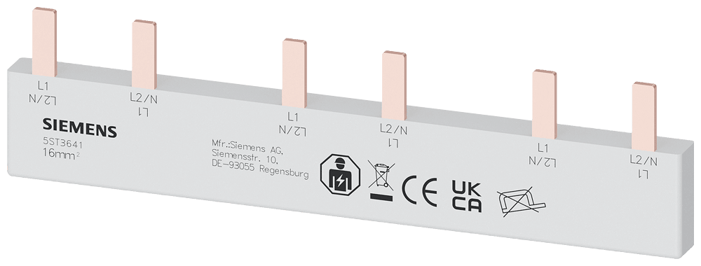 SIEMENS - Sbarra di collegamento a punte 16mm², bifase, 3x (1 fase+N+AUX), 121mm 5ST3641