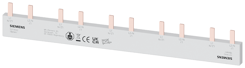 SIEMENS - Sbarra di collegamento a punte 16mm², bifase, 5x (1 fase+N+AUX), 210mm 5ST3642