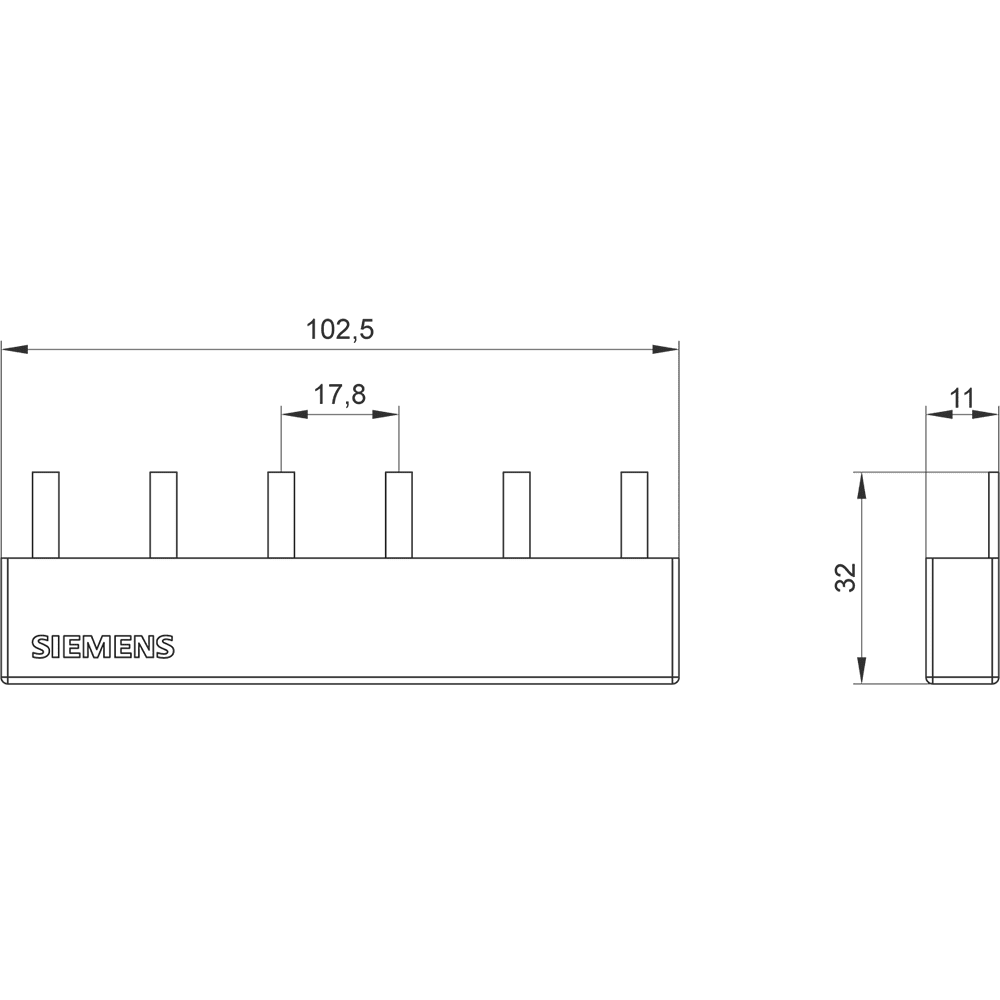 SIEMENS - Sbarra di collegamento a punte 16mm², trifase, 2x 3 fasi, 102mm