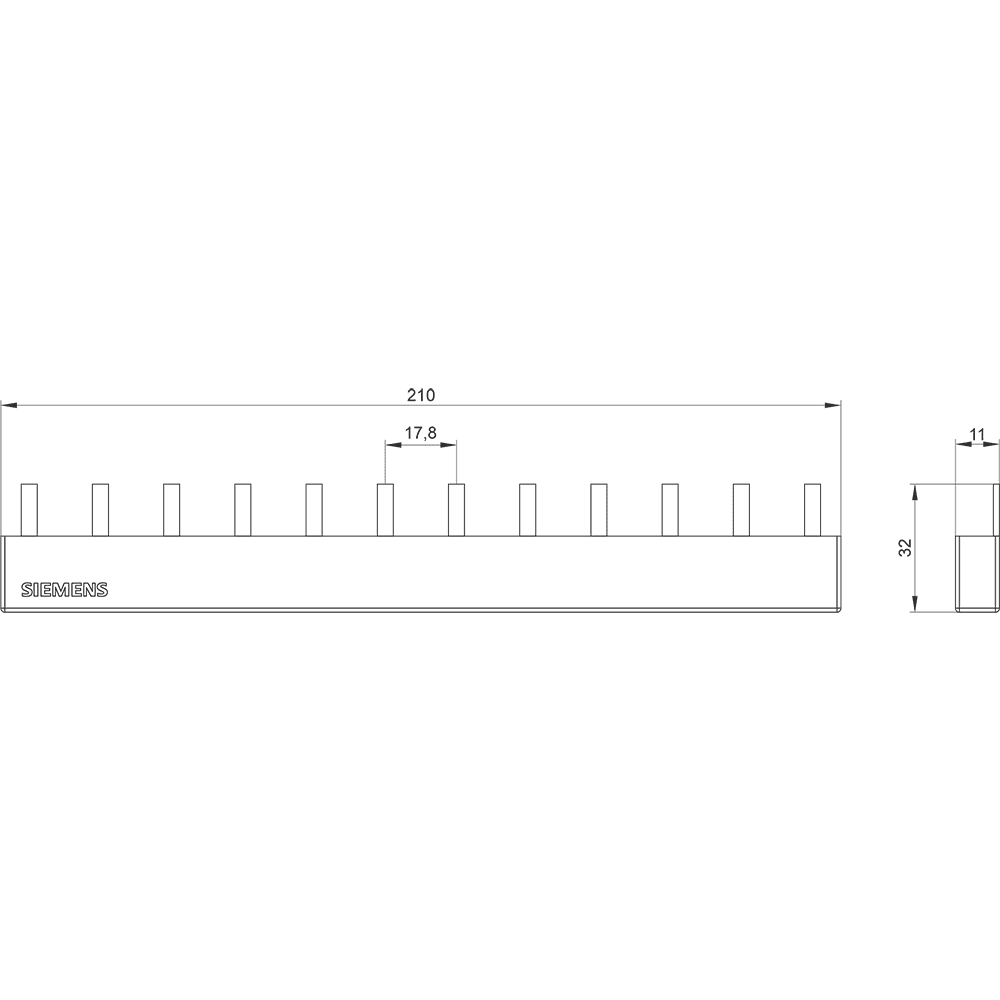 SIEMENS - Sbarra di collegamento a punte 16mm², trifase, 4x 3 fasi, 210mm
