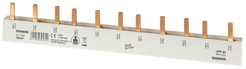 SIEMENS - sbarra di collegamento a punte, 16mm2 collegamento: trifase/+ 8x fase protetto contro i contatti accidentali per 1 interruttore differenziale, a 4 ...