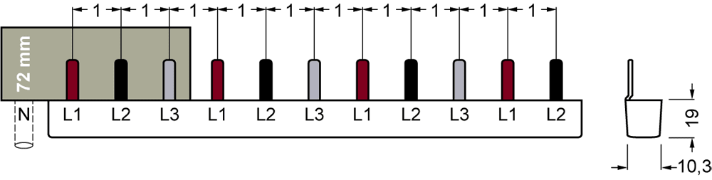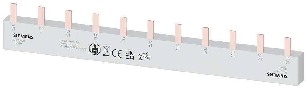 SIEMENS - sbarra di collegamento a punte, 16mm2 collegamento: trifase/+ 8x fase protetto contro i contatti accidentali per 1 interruttore differenziale, a 4 ... 5ST3668