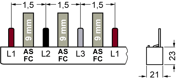 SIEMENS - Sbarra di collegamento a punte 18mm², trifase, 37x (1 fase+AUX), 1000mm sezionabile