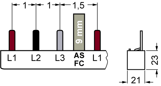 SIEMENS - Sbarra di collegamento a punte 18mm², trifase, 16x (3 fasi+AUX), 1000mm sezionabile 5ST37120HG