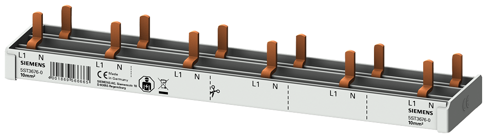 SIEMENS - Sbarra di collegamento a punte compatta, 10mm² collegamento 1p/N 6x AFDD + 6x apparecchi compatti 1 UM