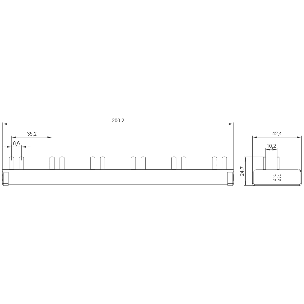SIEMENS - Sbarra di collegamento a punte compatta, 10mm² collegamento 1p/N 6x AFDD + 6x apparecchi compatti 1 UM 5ST36760