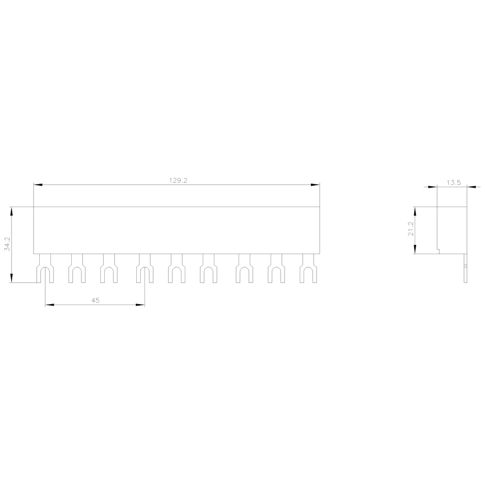 SIEMENS - Sbarre collettrici trifase, interdistanza modulare di 45 mm per 3 interruttori, attacchi a forcella 3RV19151BB