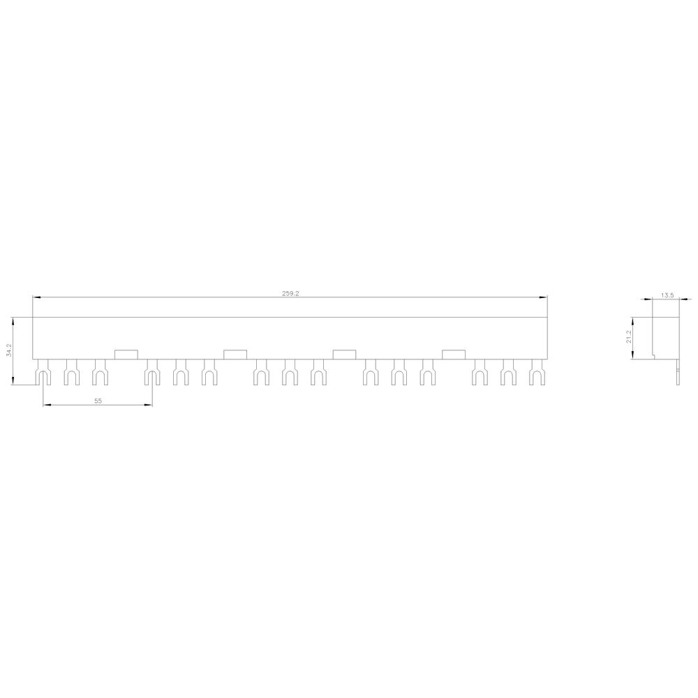 SIEMENS - Sbarre collettrici trifase, interdistanza modulare di 55 mm per 5 interruttori, attacchi a forcella 3RV19152DB