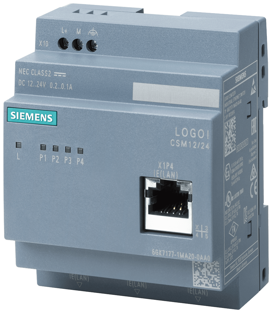 SIEMENS - SCALANCE LOGO! CSM 12/24, unmanaged switch, 4x RJ45, 1x porta frontale 6GK71771MA200AA0