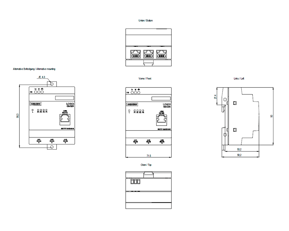 LOGO! CSM12/24 Compact Switch modulo collegamento di un'unità LOGO! (. ..0BA7/...0BA8) e di fino a 3 ulteriori nodi a Industrial Ethernet con 10/100 MBit/s switch unmanaged, 4 porte RJ45 1x porta frontale per la diagnostica DC alimentazione di tensione 12/24V diagnostica LED, configurazione LOGO! SCALANCE LOGO! CSM 12/24 Compact Switch Module, unmanaged switch, 4x RJ45 da 10/100 Mbit/s, 1x porta frontale per il collegamento di un LOGO! a IERealizzazione di piccole reti Ethernet locali.Realizzazione economica di piccole reti Industrial Ethernet locali con risparmio di costi di montaggio e di spazio d'installazione rispetto all'impiego di un componente di rete esterno. Possibilità di ampliamento flessibile della rete grazie al semplice inserimento del Control Supply Module. Messa in servizio rapida, poiché non è necessaria alcuna progettazione, nonché accesso veloce e senza complicazioni alla diagnostica nel quadro elettrico. Supporto dell'impiego stand-alone come unmanaged switch a 4 porte per l'interconnessione in rete di qualsiasi apparecchiatura Ethernet. LED di segnalazione per diagnostica e visualizzazione di stato delle porte Industrial Ethernet.Compact Switch Module per il collegamento di un LOGO! e di fino a 3 ulteriori nodi a Industrial Ethernet con switch unmanaged da 10/100 Mbit/s, 4x porteRJ45, 1x porta frontale per diagnostica, DC 12/24 V.Il sistema è completato da un IE FC Outlet RJ45 e diverse varianti di cavi.&DPMD_ACK236_001_000_1002400&&DPMD_ACK238_001_000_1002400&