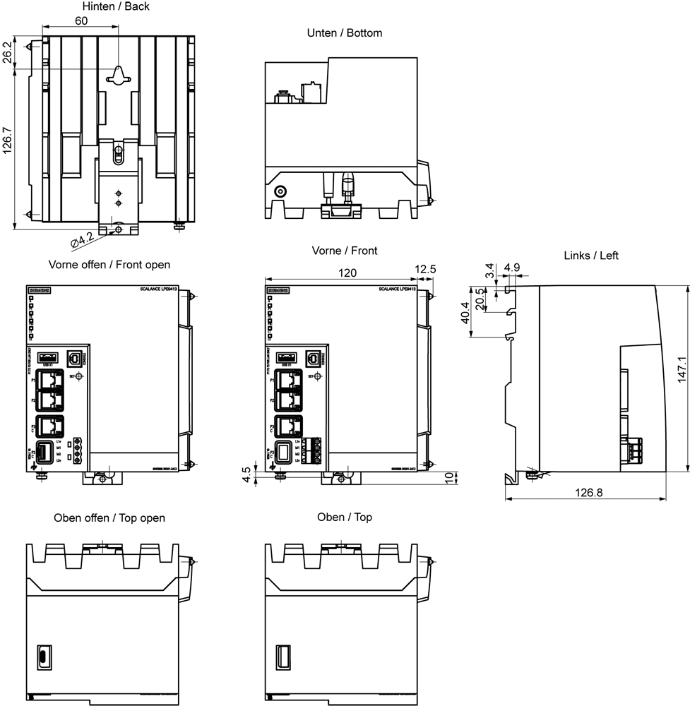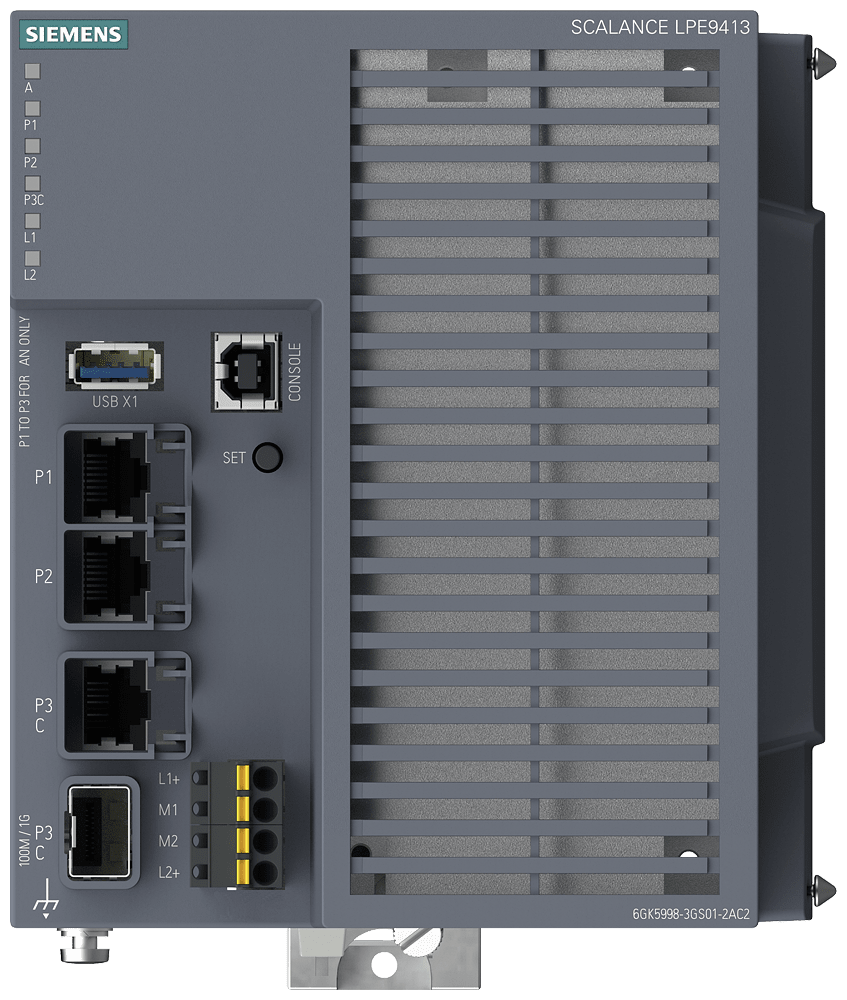 SIEMENS - SCALANCE LPE9413 Ind. Edge Local Processing Engine; 64 bit ARMv8 (4 core); 4GB RAM; 40GB eMMC(pSLC); 3x RJ45 da 10/100/1000 Mbit/s; 1x 100/1000 Mbi... 6GK59983GS012AC2