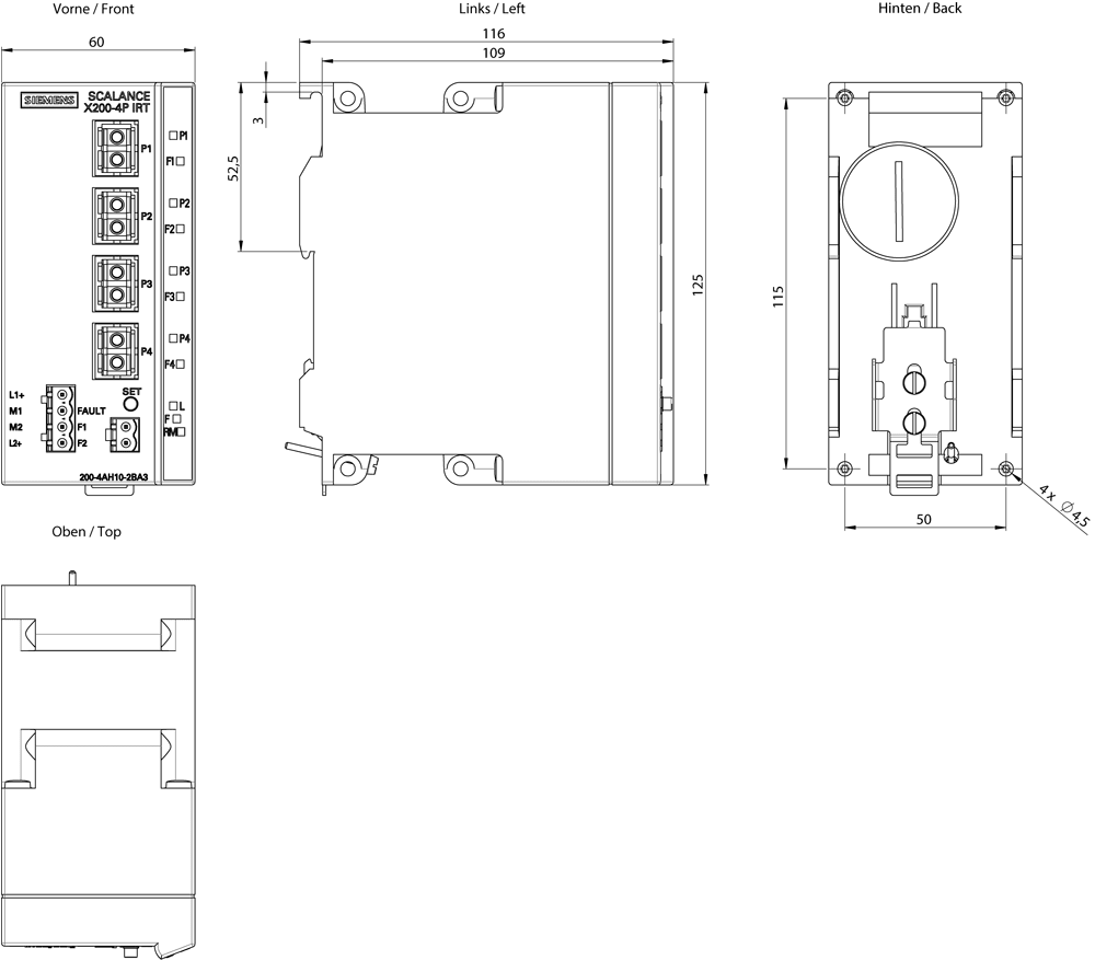 SIEMENS - SCALANCE X200-4P IRT, managed switch di Layer 2, 4x SC RJ POF 6GK52004AH102BA3