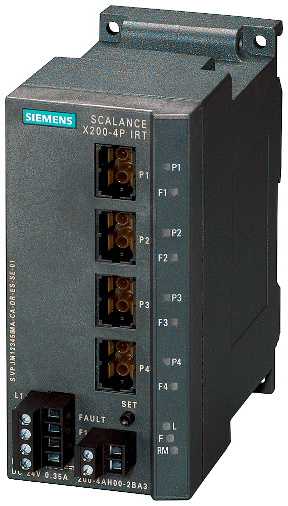 SIEMENS - SCALANCE X200-4PIRT managed IE IRT Switch, 4x 100 Mbit/s porte SC RJ per POF, contatto di segnalazione errore con pulsante Set, alimentazione di te...