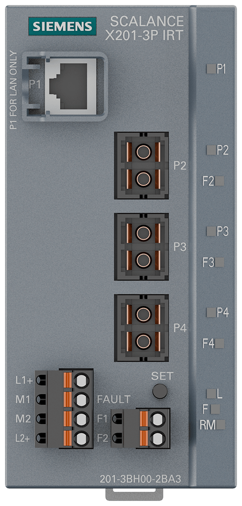 SIEMENS - SCALANCE X201-3P IRT, managed switch di Layer 2, 1x RJ45, 3x SC RJ POF