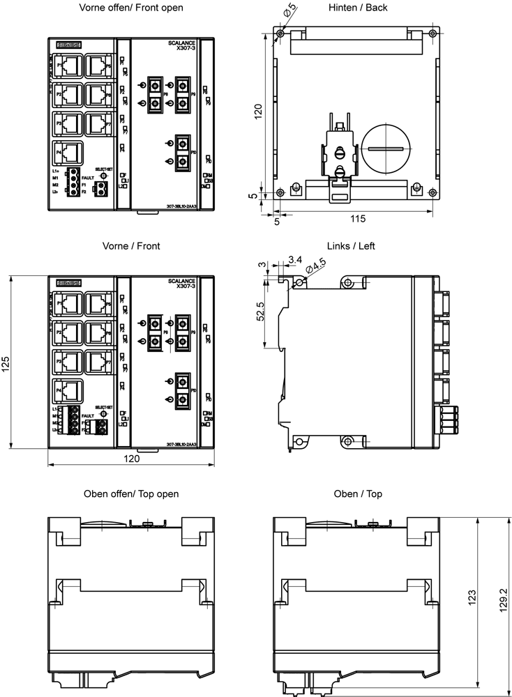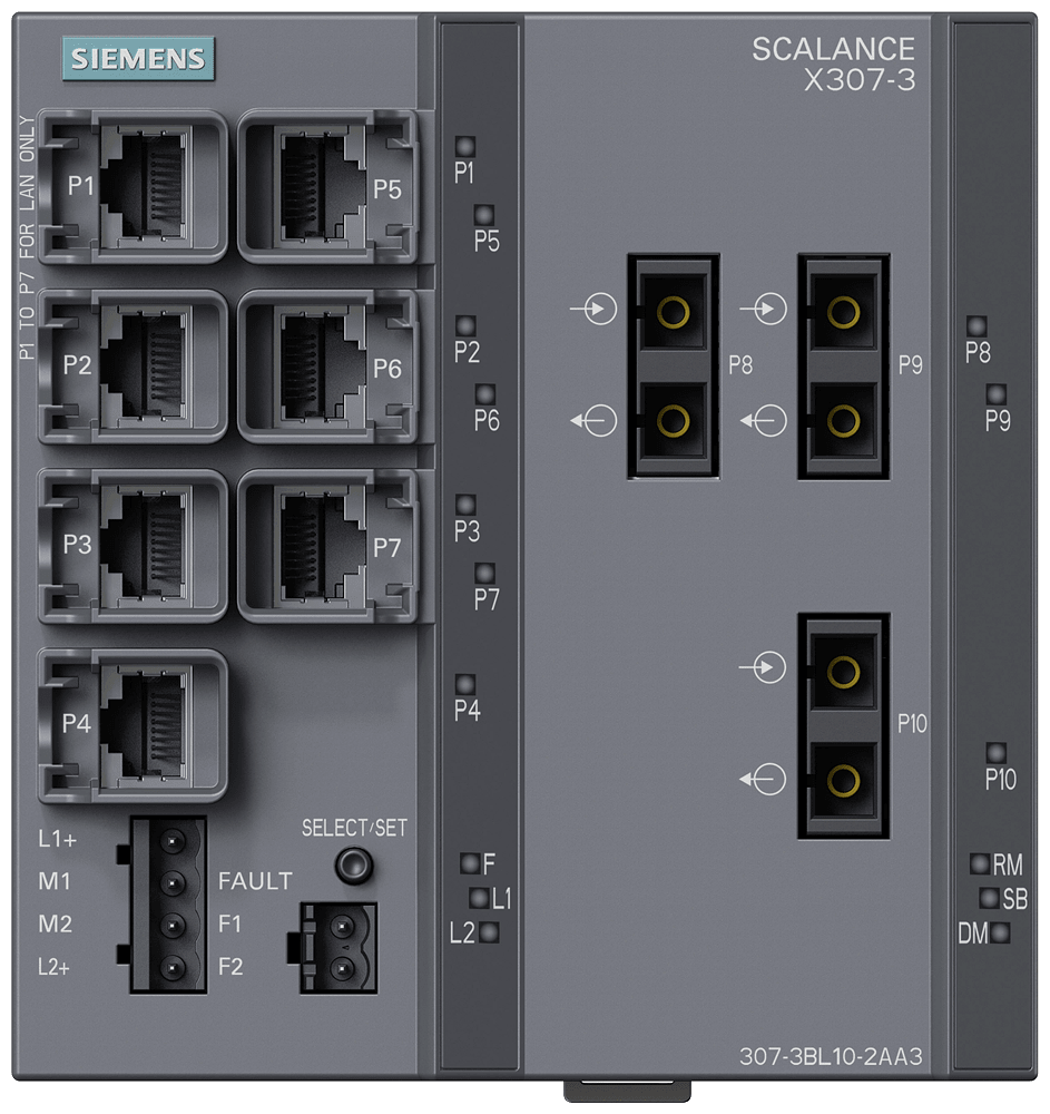 SIEMENS - SCALANCE X307-3, managed switch di Layer 2, 7x RJ45, 3x multimode SC 6GK53073BL102AA3