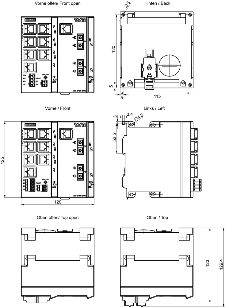 SCALANCE X308-2LD, managed plus IE Switch, 2x 1000 Mbit/s SM SC, 1x 10/100/1000 Mbit/s, 7x porte RJ45 da 10/100 Mbit/s, diagnostica LED, contatto di segnalazione contatto con pulsante Select/Set, PROFINET IO Device, Network management, integrato manager di ridondanza, Office Features (RSTP, VLAN, IGMP,..) C-PLUG nella dotazione di fornitura. SCALANCE X308-2LD managed, switch compatto di Layer 2, 7x RJ45 da 10/100 Mbit/s, 1x RJ45 da 10/100/1000 Mbit/s, 2x singlemode SC da 1000 Mbit/s per la strutturazione di reti d'impianto performanti. Switch per quadro elettrico SCALANCE X308-2LD flessibile e salvaspazio: la prossima generazione di reti industriali combina OT e IT per una produzione più flessibile e sicura. I nostri switch Ethernet SCALANCE X-300 come dispositivi compatti o come switch a 19" per il quadro elettrico assicurano un elevato livello di funzionalità e flessibilità con Industrial Edge e, in futuro, anche con Time-Sensitive Networking (TSN). Scoprite i molteplici vantaggi della nostra serie di apparecchi SCALANCE X-300: dagli switch per il quadro elettrico da utilizzare negli ambienti industriali agli switch Ethernet in design compatto, fino agli switch per le condizioni industriali più gravose: con SCALANCE X308-2 si trova sempre il giusto switch per numerose applicazioni.