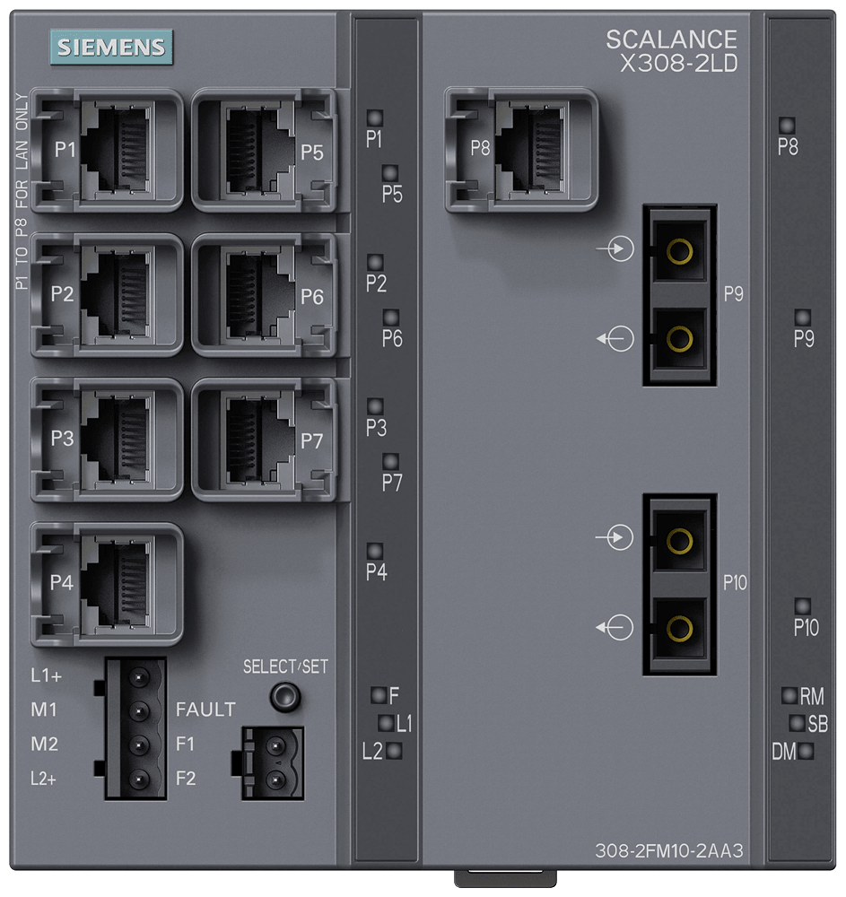 SIEMENS - SCALANCE X308-2LD, managed switch di Layer 2, 8x RJ45, 2x singlemode SC 6GK53082FM102AA3