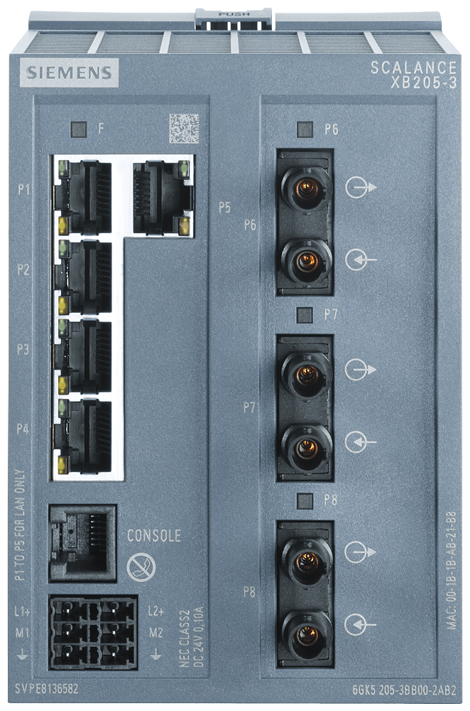 SIEMENS - SCALANCE XB205-3, managed switch Layer 2, 5xRJ45, 3xmultimode ST/BFOC, def: E/IP