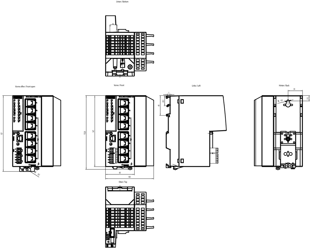 SIEMENS - SCALANCE XC208G PoE (DC 24 V), managed switch di Layer 2, 6x RJ45 PoE, 2x RJ45 6GK52080RA002AC2