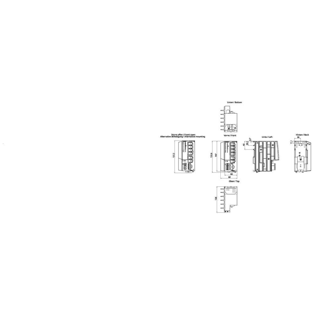 SCALANCE XCH108PoE (6x RJ45 da 100/1000 Mbit/s, PoE, 2x 1000/10000 Mbit/s SFP) switch IE unmanaged fino a 120W potenza PoE su 6 porte, diagnostica LED, contatto di segnalazione errore con tasto SET, ridondanza della alimentazione di tensione, con schede di circuito stampato verniciate, manuale disponibile come download . SCALANCE XCH108 PoE unmanaged IE switch, 6x PoE Gbit, 2x SFP. Economico, semplice e versatile: uno SCALANCE XCH108 è lo switch ideale per garantire una infrastruttura di rete affidabile e robusta. Con SCALANCE XCH108 si trova sempre il giusto unmanaged switch per i collegamenti di reti elettriche e ottiche. Grazie all'hardware potente e alle funzioni avanzate, assicura l'integrazione diretta e la scalabilità per qualsiasi ambiente di rete. Con la nuova serie di unmanaged switch SCALANCE XCM-100 è possibileanche realizzare applicazioni Power over Ethernet. I nostri unmanaged switch e Media-Converter sono perfetti per l'impiego in vicinanza delle macchine nelle reti industriali e resistono anche alle condizioni ambientali gravose.