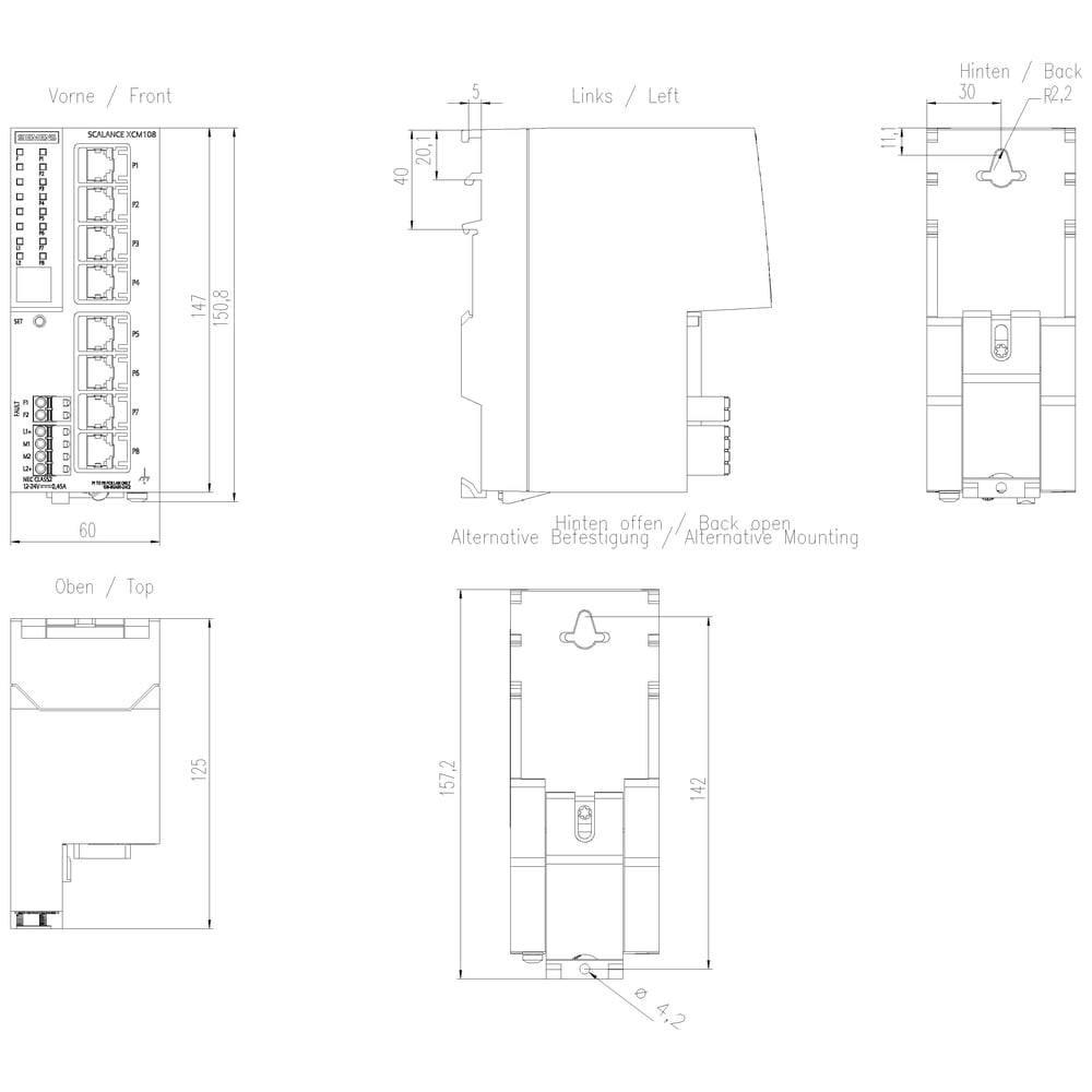 SIEMENS - SCALANCE XCM108, unmanaged switch, 8x RJ45