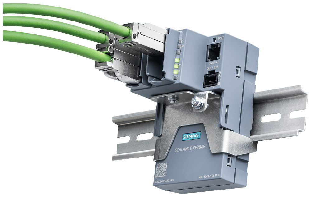 SCALANCE XF204G manageable IE Switch di Layer 2; 4x10/100/1000 Mbit/s; RJ45; 1x porta di console; LED di diagnostica; campo di temp. 0°C ... +60°C; montaggio: guida profilata/parete con piastra in metallo accessori (disponibile separatamente); PROFINET IO Device; slot C-PLUG; accessori piastra in metallo guida profilata: 6GK5980-2HA00-0AA1 accessori piastra in metallo stazione operatore: 6GK5980-2HA10-0AA1 SCALANCE XF204G manageable switch IE di Layer 2, 4x porte RJ45 da 10/100/1000 Mbps. Indicato per numerose applicazioni: Lo SCALANCE XF204G offre un'ampia varietà di switch Ethernet altamente performanti in diverse varianti: dagli switch Gigabit agli switch robusti per i requisiti dell'automazione discreta e di processo. I potenti switch Gigabit SCALANCE XF204G sono stati sviluppati per rispondere ai difficili requisiti delle reti negli ambienti industriali. Grazie all'hardware potente e alle funzioni avanzate, assicurano un'infrastruttura di rete affidabile e scalabile per qualsiasi applicazione. Realizzazione semplice e affidabile di molte applicazioni industriali.