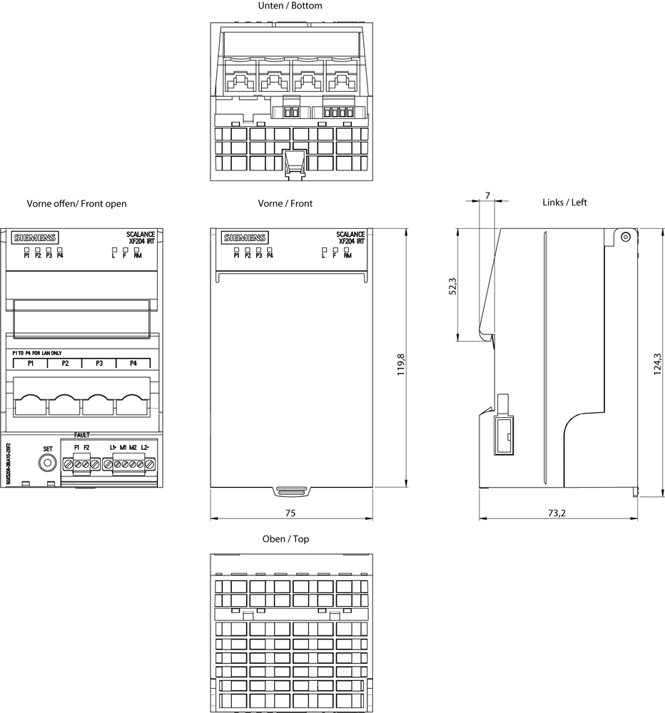 SIEMENS - SCALANCE XF204IRT, managed flat switch di Layer 2, 4x RJ45