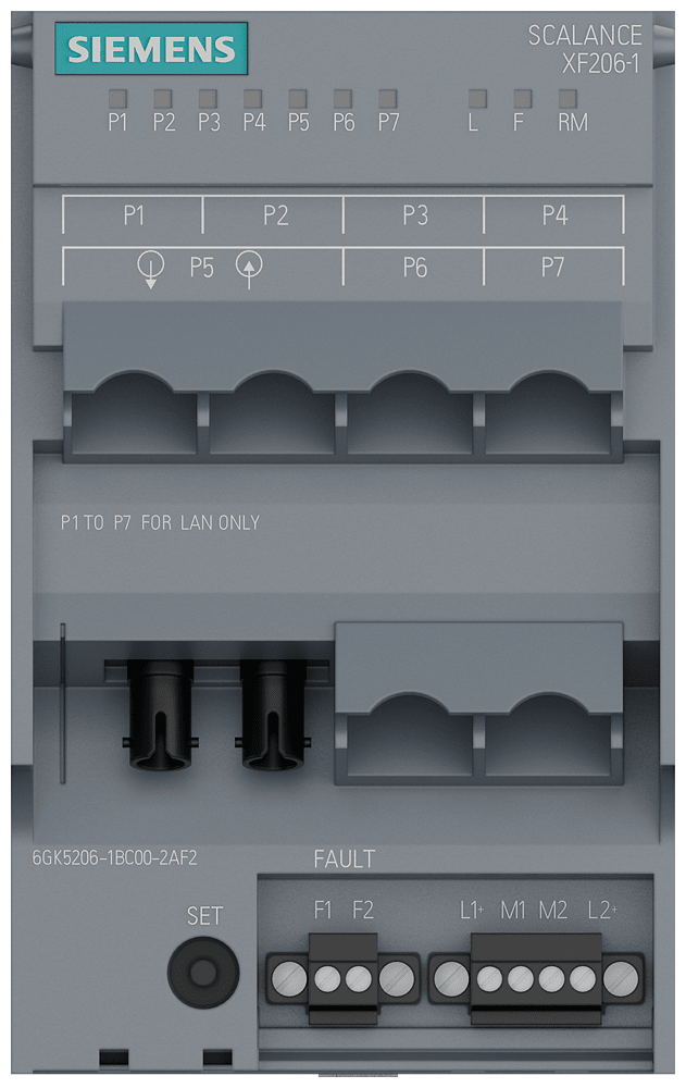 SIEMENS - SCALANCE XF206-1, managed flat switch di Layer 2, 6x RJ45, 1x multimode ST/BFOC