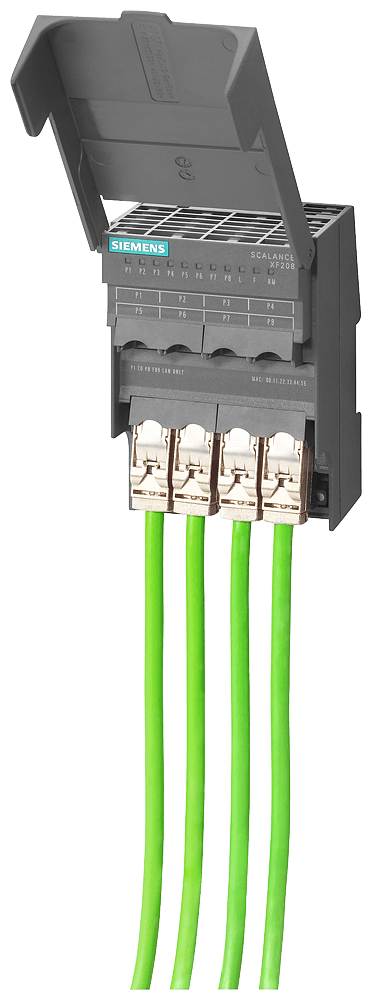 SCALANCE XF208, piatto, switch IE managed, 8x porte RJ45 da 10/100 Mbit/s, contatto di segnalazione errore con pulsante Set, alimentazione di tensione ridondante ; PROFINET IO Device, Network Management, manager di ridondanza integrato, incl. manuale elettronico su CD-ROM, C-PLUG opzionale. SCALANCE XF208 managed, flat switch di Layer 2, 8 x RJ45 da 10/100 Mbit/s per l'impiego nel quadro elettrico nel design SIMATIC ET 200S. Custodia piatta in plastica per l'installazione nel quadro elettrico e in piccole cassette di distribuzione. Indicato per numerose applicazioni: Lo SCALANCE XF208 offre un'ampia varietà di switch Ethernet altamente performanti in diverse varianti: dagli switch Gigabit agli switch robusti per i requisiti dell'automazione discreta e di processo. I potenti switch Gigabit SCALANCE XF208 sono stati sviluppati per rispondere ai difficili requisiti delle reti negli ambienti industriali. Grazie all'hardware potente e alle funzioni avanzate, assicurano un'infrastruttura di rete affidabile e scalabile per qualsiasi applicazione. Realizzazione semplice e affidabile di molte applicazioni industriali.