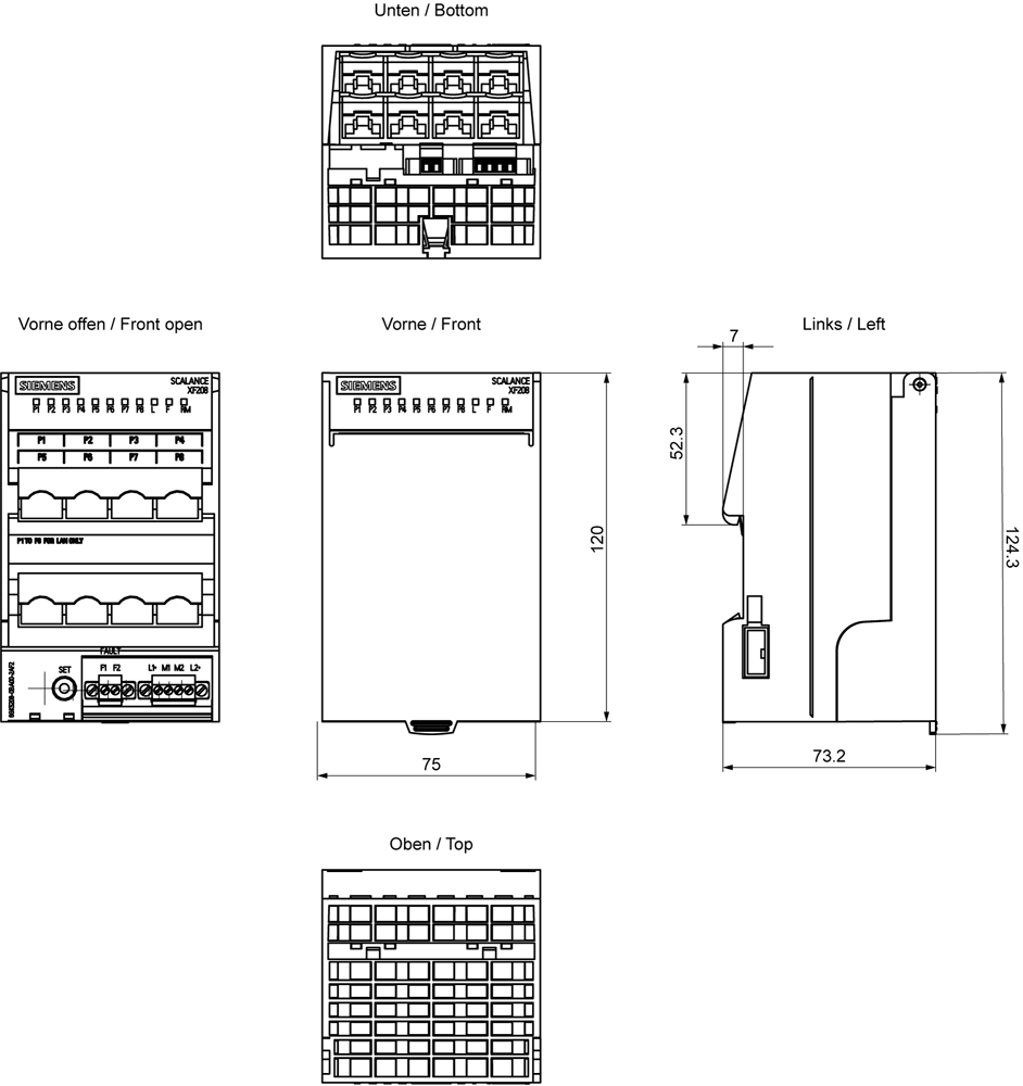 SIEMENS - SCALANCE XF208, managed flat switch di Layer 2, 8x RJ45 6GK52080BA002AF2