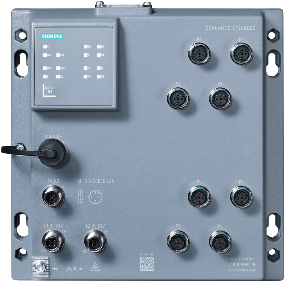 SIEMENS - SCALANCE XP208PoE EEC, managed switch Layer 2, 8xM12, IP65/67, Conf.Coating, PoE