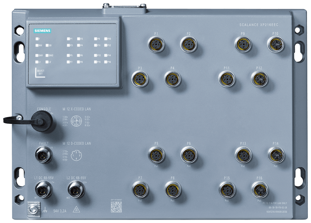 SIEMENS - SCALANCE XP216EEC, managed switch Layer 2, 16x M12, IP65/67, Conformal Coating 6GK52160HA002ES6