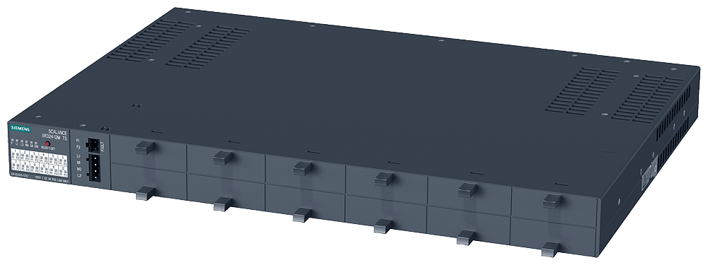 SCALANCE XR324-12M TS; switch IE managed, rack da 19"; 12x 100/1000 Mbit/s media module a 2 porte, elettriche oppure ottiche; diagnostica LED; contatto di segnalazione ; pulsante Select/Set, PROFINET IO Device, Network management, integrato manager di ridondanza, Office Features (RSTP, VLAN, IGMP,..) C-PLUG nella dotazione di fornitura; alimentazione di tensione DC 24 V; porte frontali SCALANCE XR324-12M TS managed, rack switch di Layer 2, 12x 100/1000 Mbit/s per Media-Modules, DC 24 V, porte sul lato anteriore per il traffico stradale e ferroviario. Installazione in rack da 19 pollici per la configurazione di reti strutturate. Switch per quadro elettrico SCALANCE XR324-12M flessibile e compatto: la prossima generazione di reti industriali combina OT e IT per una produzione più flessibile e sicura. I nostri switch Ethernet SCALANCE X-300 come dispositivi compatti o come switch a 19" per il quadro elettrico assicurano un elevato livello di funzionalità e flessibilità con Industrial Edge e, in futuro, anche con Time-Sensitive Networking (TSN). Scoprite i molteplici vantaggi della nostra serie di apparecchiature SCALANCE XR-300: dagli switch per il quadro elettrico da utilizzare negli ambienti industriali agli switch Ethernet in design compatto, fino agli switch per le condizioni industriali più gravose: con SCALANCE XR324-12M si trova sempre il giusto switch per numerose applicazioni.