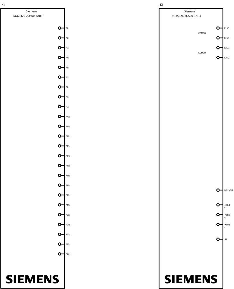SIEMENS - SCALANCE XR326-2C PoE WG, man.sw.Layer 2, 24x RJ45 PoE, 2x porte combo PoE 6GK53262QS003AR3