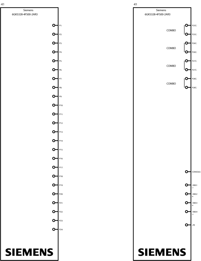SIEMENS - SCALANCE XR328-4C WG, man.sw.Layer 2, 24x RJ45, 4x porte combo, DC24V 6GK53284FS002AR3