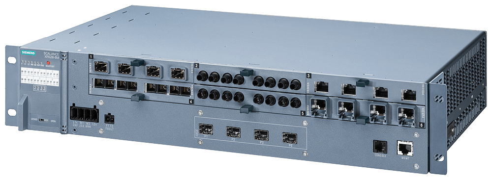 SIEMENS - SCALANCE XR528-6M man.sw.Layer2, 4xSFP+, 6x per Media-Modules, PoE, porte front. 6GK55280AA002AR2