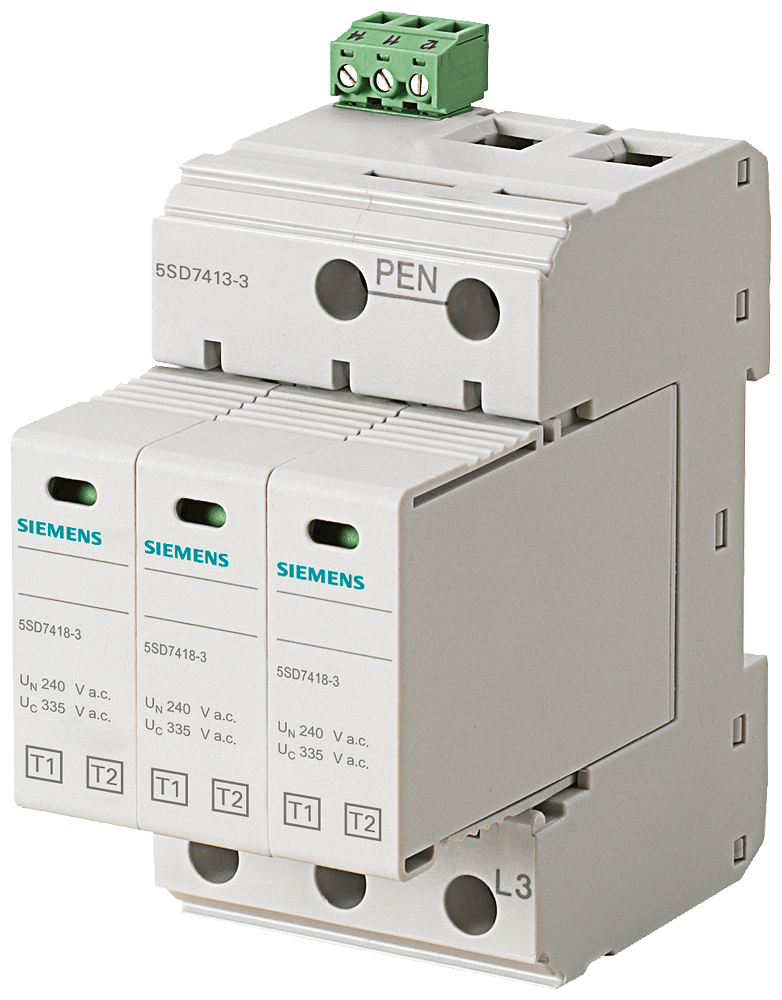 SIEMENS - Scaricatore di sovratensione di origine atmosferica T1/T2, Un 240/400 V, UC AC 335 V, moduli di protezione inseribili 5SD74133