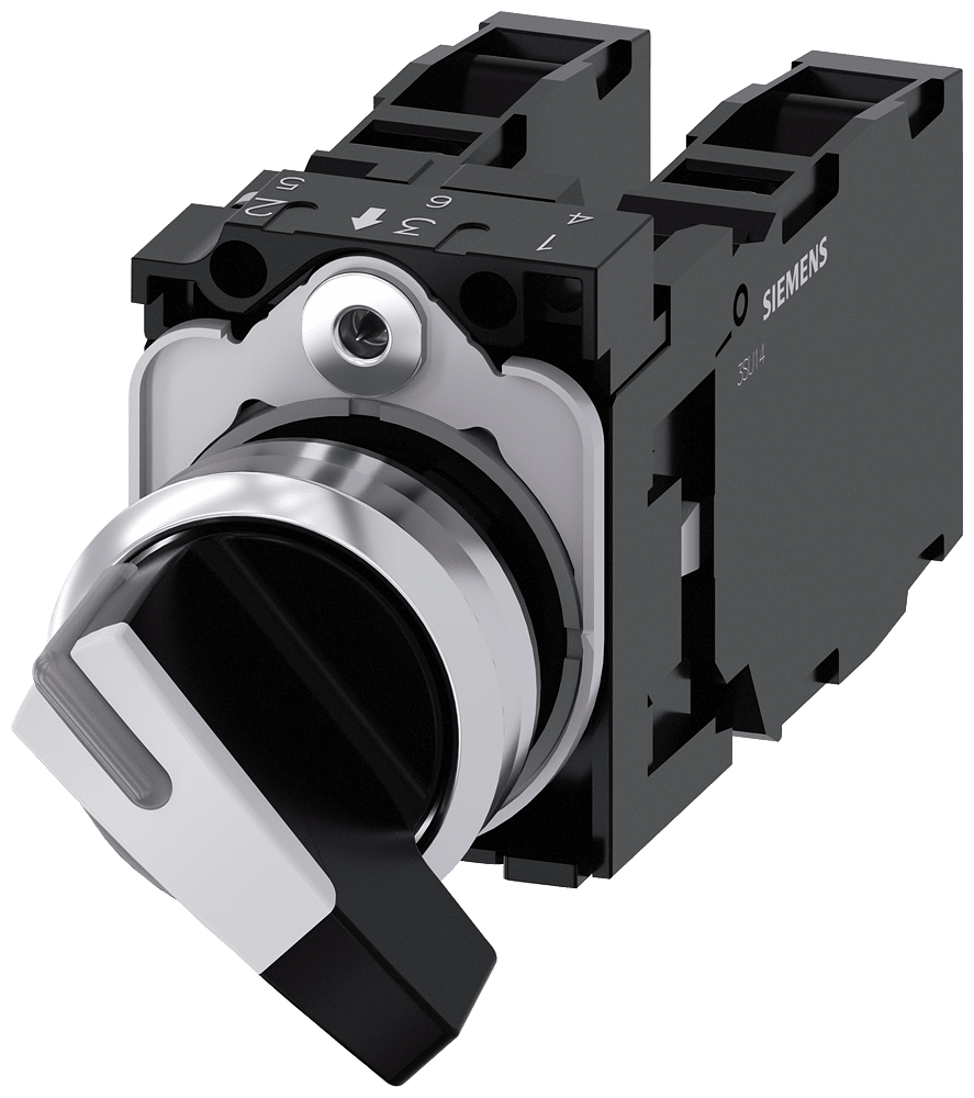 selettore, 22 mm, rotondo, in metallo, lucido, bianco, selettore, lungo, 2 posizioni di commutazione O-I, permanente, angolo di comando 90°, 10:30 h/13:30 h, con supporto, 1 NO, 1 NO, morsetti a vite Selettore SIRIUS ACT per la commutazione e il comando di utilizzatori elettrici. Siemens offre, sotto il nome commerciale SIRIUS ACT, un portfolio esclusivo di dispositivi di comando e segnalazione con omologazioni di prodotto per il mercato mondiale in tre moderne serie di design in robusto metallo puro e plastica pregiata.L'innovativo concetto di innesto a scatto semplifica talmente il montaggio che per eseguirlo basta una sola mano e non servono attrezzi speciali. Per i fori di montaggio sono sufficienti semplici fori non scanalati, essendo già integrata una protezione antirotazione al 100 %.Grazie al grado di protezione elevato i robusti apparecchi sono adatti all'impiego industriale e in ambiente esterno. È persino possibile la pulizia con getto ad alta pressione. Né polvere, né oli, né liscivia possono comprometterne il funzionamento affidabile.Oltre che con il cablaggio standard, gli apparecchi possono essere collegati al controllore anche tramite PROFINET, AS-Interface oppure IO-Link. Potete così ridurre il vostro onere di cablaggio, minimizzare le fonti di errore e ottenere maggiore flessibilità.Il configuratore online grafico supporta in modo confortevole la scelta e l'ordinazione di singoli apparecchi, pulsantiere e iscrizioni. È disponibile una documentazione completa (ad es. manuale, dati 3D, schema di collegamento). Esecuzioni fornibili: più colori, 2-4 posizioni di commutazione, operatore corto/lungo o manopola, luminoso/non luminoso (illuminazione anche applicabile a posteriori), comando permanente/ad impulso. Avvertenza: Apparecchio completo, fornitura incl. supporto e moduli. SIRIUS ACT - Performance in Action nel comando e nella segnalazione. Semplici da montare, altamente performanti, semplicemente perfetti.