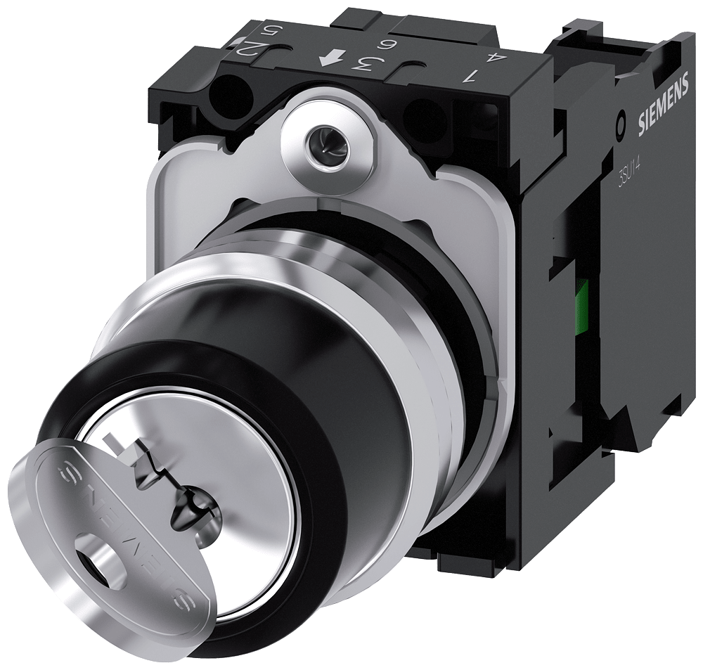 selettore a chiave RONIS, 22 mm, rotondo, in metallo, lucido, numero serratura SB30, con 2 chiavi, 2 posizioni di commutazione O-I, permanente, angolo di comando 90°, 10:30h/13:30h, estrazione chiave O+I, con supporto, 1 NO, morsetti a vite, possibili serrature speciali: SB31, 421, 455 Selettore a chiave SIRIUS ACT per elevati requisiti di sicurezza dell'accesso. Siemens offre, sotto il nome commerciale SIRIUS ACT, un portfolio esclusivo di dispositivi di comando e segnalazione con omologazioni di prodotto per il mercato mondiale in tre moderne serie di design in robusto metallo puro e plastica pregiata.L'innovativo concetto di innesto a scatto semplifica talmente il montaggio che per eseguirlo basta una sola mano e non servono attrezzi speciali. Per i fori di montaggio sono sufficienti semplici fori non scanalati, essendo già integrata una protezione antirotazione al 100 %.Grazie al grado di protezione elevato i robusti apparecchi sono adatti all'impiego industriale e in ambiente esterno. È persino possibile la pulizia con getto ad alta pressione. Né polvere, né oli, né liscivia possono comprometterne il funzionamento affidabile.Oltre che con il cablaggio standard, gli apparecchi possono essere collegati al controllore anche tramite PROFINET, AS-Interface oppure IO-Link. Potete cosìridurre il vostro onere di cablaggio, minimizzare le fonti di errore e ottenere maggiore flessibilità.Il configuratore online grafico supporta in modo confortevole la scelta e l'ordinazione di singoli apparecchi, pulsantiere e iscrizioni. È disponibile una documentazione completa (ad es. manuale, dati 3D, schema di collegamento). Esecuzioni fornibili: diversi sistemi di chiusura (Siemens, C; Siemens, B; RONIS; OMR; IKON), 2/3 posizioni di commutazione, comando permanente/ad impulso, diverse posizioni di estrazione chiave. Avvertenza: Apparecchio completo, fornitura incl. supporto e moduli. SIRIUS ACT - Performance in Action nel comando e nella segnalazione. Semplici da montare, altamente performanti, semplicemente perfetti.